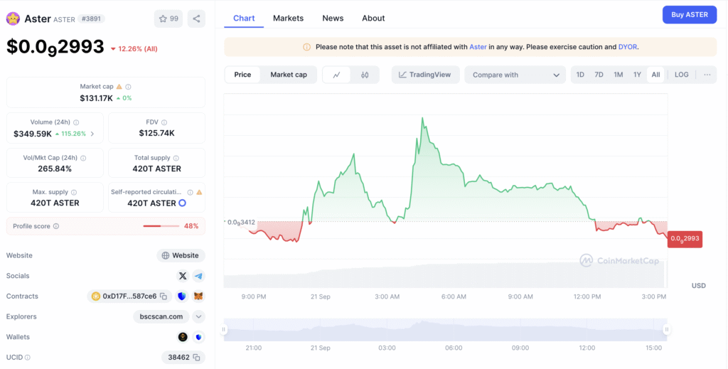 Token Positioning: Marketed as “Crypto’s cutest star,” ASTER positions itself as a meme-style/community-driven token rather than a utility- or tech-first project.