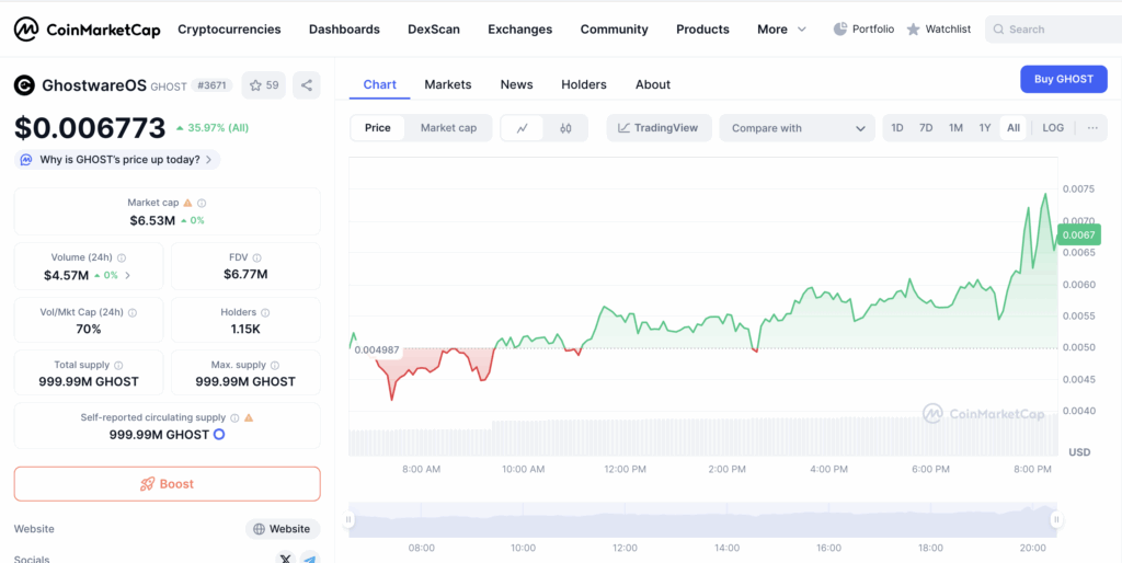 Comment: GhostwareOS (GHOST) shows a healthy early-phase trading profile with organic buying interest and low evidence of aggressive dumping. If momentum holds and volume persists, the project could establish a stable base for gradual appreciation.