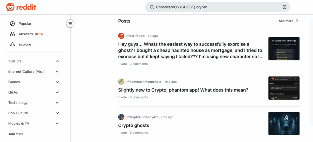 The cryptocurrency GhostwareOS (GHOST) has no traceable organic social media presence or community buzz on Reddit based on this analysis. The search results are overwhelmingly dominated by content related to ghosts in video games or extremely generic, low-effort crypto posts that only coincidentally include keywords.