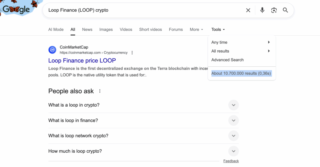 We analyzed Google search visibility for “Loop Finance (LOOP) crypto” and found approximately 10.7 million indexed results. From an analytical standpoint, this represents a very strong online presence and broad recognition across web platforms. Such a high volume of mentions suggests strong market awareness, established credibility, and significant historical or ongoing discussion around the project. In general, a result count of this magnitude indicates that Loop Finance maintains solid brand visibility and investor trust, which could support its long-term stability and growth potential.
