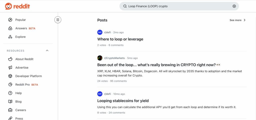The Reddit activity for “Loop Finance ($LOOP)” is entirely topical and does not reference a specific token or financial entity called “Loop Finance”. The term “loop” is used generically to describe a common DeFi strategy of leveraging or reinvesting for yield.