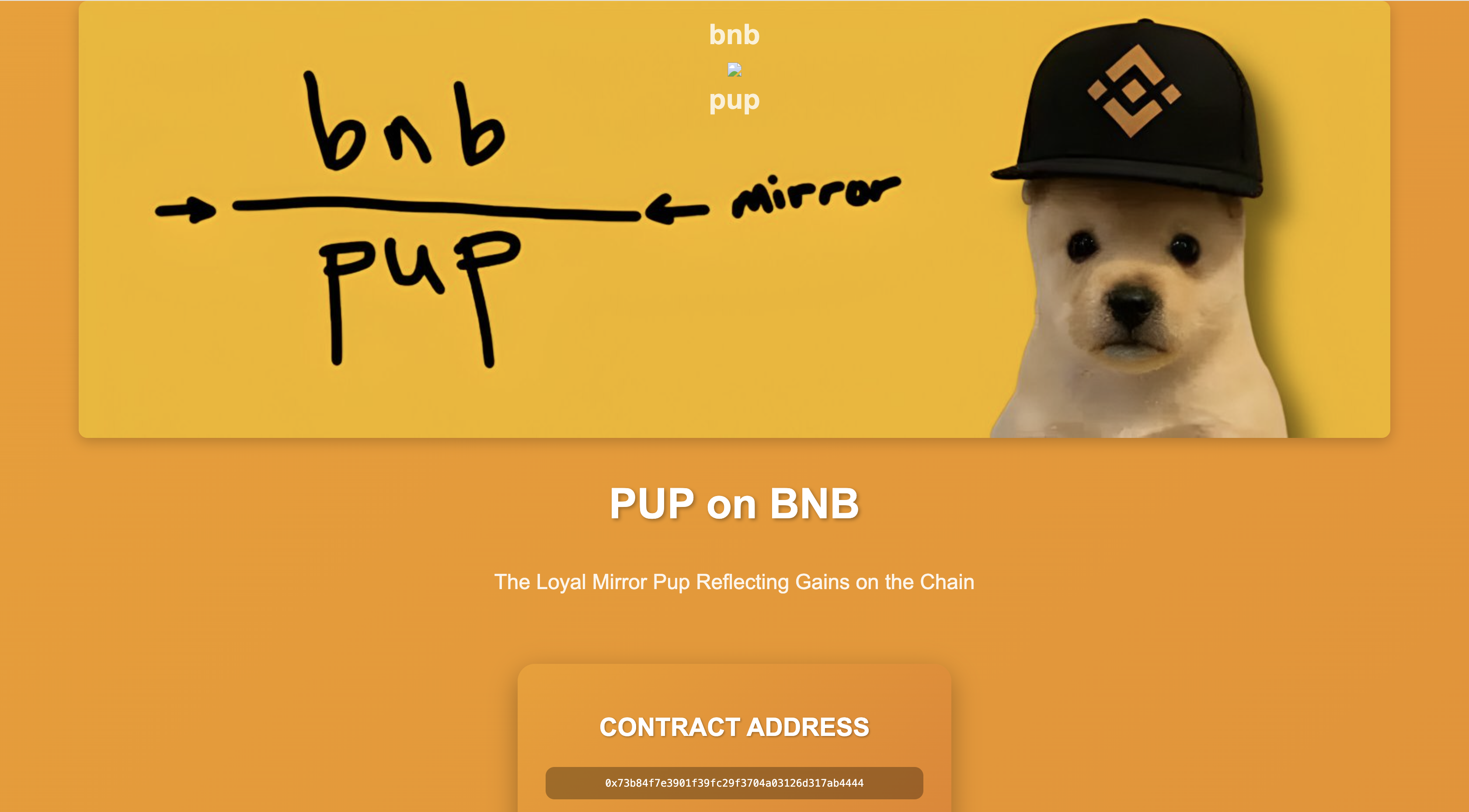 Token Positioning: $PUP is branded as “The Loyal Mirror Pup,” linking itself to Binance Smart Chain and presenting as a reflection or mirror token tied to BNB performance. It positions itself as both a meme asset and a symbolic BNB companion coin.