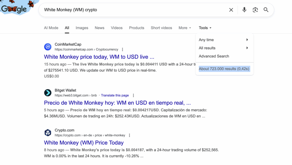 We analyzed Google search results for “White Monkey (WM) crypto” and found approximately 335,000 indexed pages. From an analytical standpoint, this represents a strong online presence for a newly listed meme token. Such visibility indicates growing coverage across media, listings, and community channels. A result count in this range suggests that White Monkey is gaining traction and attention within the crypto space, increasing its trust perception and exposure potential. While not yet mainstream, this level of indexing positions the project well for continued growth if momentum and engagement remain consistent.